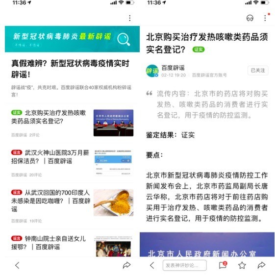 另外,截至2月17日,百度辟謠賬號已累計上線333條內(nèi)容,對這些信息分別進(jìn)行了辟謠、證實(shí)或待論證的結(jié)論性甄別,幫助網(wǎng)民更好地分辨謠言,科學(xué)抗擊疫情。