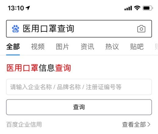 同時,百度的多個產(chǎn)品在疫情期間也推出了各種各樣的新功能,幫助網(wǎng)民在查詢信息和知識的時候能夠更好地判別真?zhèn)?、去偽存真。以疫情期間用戶急需的“口罩”產(chǎn)品為例,百度在2月5日在百度搜索中上線了“醫(yī)用口罩信息查詢”服務(wù),用戶只要使用百度搜索“醫(yī)用口罩查詢”就可以找到相關(guān)入口,支持通過企業(yè)名稱、品牌名稱、注冊信息等查詢醫(yī)用口罩生產(chǎn)企業(yè)信息和藥監(jiān)部門的備案信息,幫助用戶辨識口罩質(zhì)量情況。
