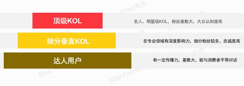 KOL根據(jù)粉絲數(shù)和影響力基本可分為三層: