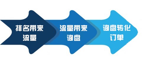 網(wǎng)站從有排名到訂單轉(zhuǎn)化之間并不是一步到位的,期間包括三次轉(zhuǎn)化過程:排名帶來流量,流量帶來詢盤,詢盤轉(zhuǎn)化訂單。