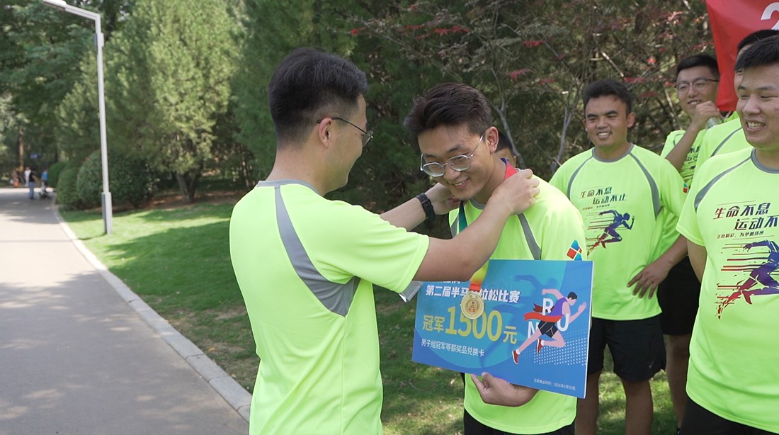 最后稍作調(diào)整休息,由田總為各位獲獎的興田健兒們頒發(fā)獎品并寄語:“馬拉松精神值得每一位興田人學(xué)習(xí),希望在以后的工作中,大家再接再厲,努力拼搏奮斗,與興田共同進(jìn)步?!?br/>