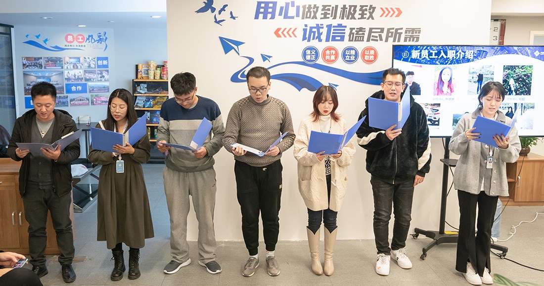 會議第二項是新員工入職宣誓儀式,這次有7位新的小伙伴加入興田,希望以后可以共同進步,一起加油。