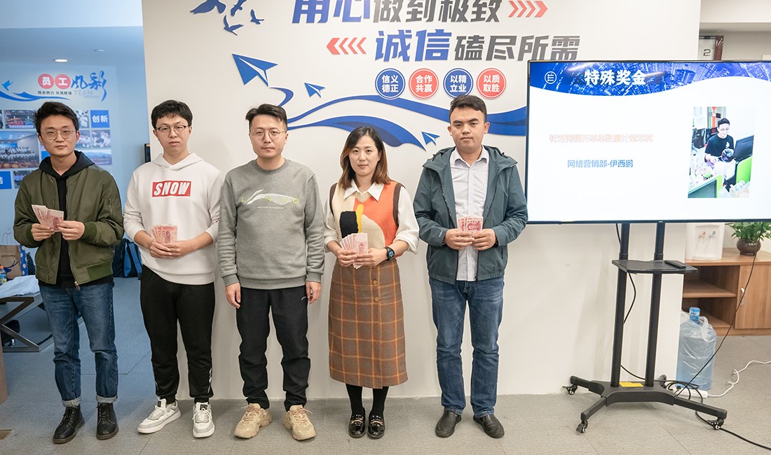 會議第一項是士氣展示,各個部門的小伙伴們上臺喊出自己的口號,展現(xiàn)出部門的風(fēng)姿與士氣。
