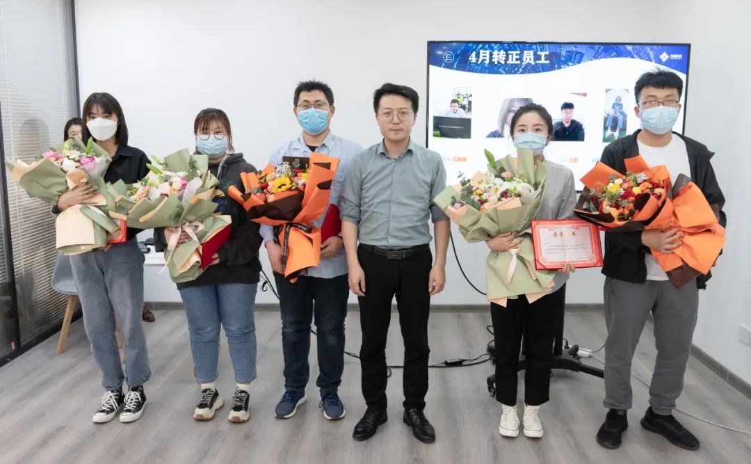 會議的第三項是員工轉(zhuǎn)正儀式,本次共有5名小伙伴轉(zhuǎn)正,希望大家以后可以繼續(xù)在各自的崗位上發(fā)光發(fā)熱,為興田的建設(shè)添磚加瓦。