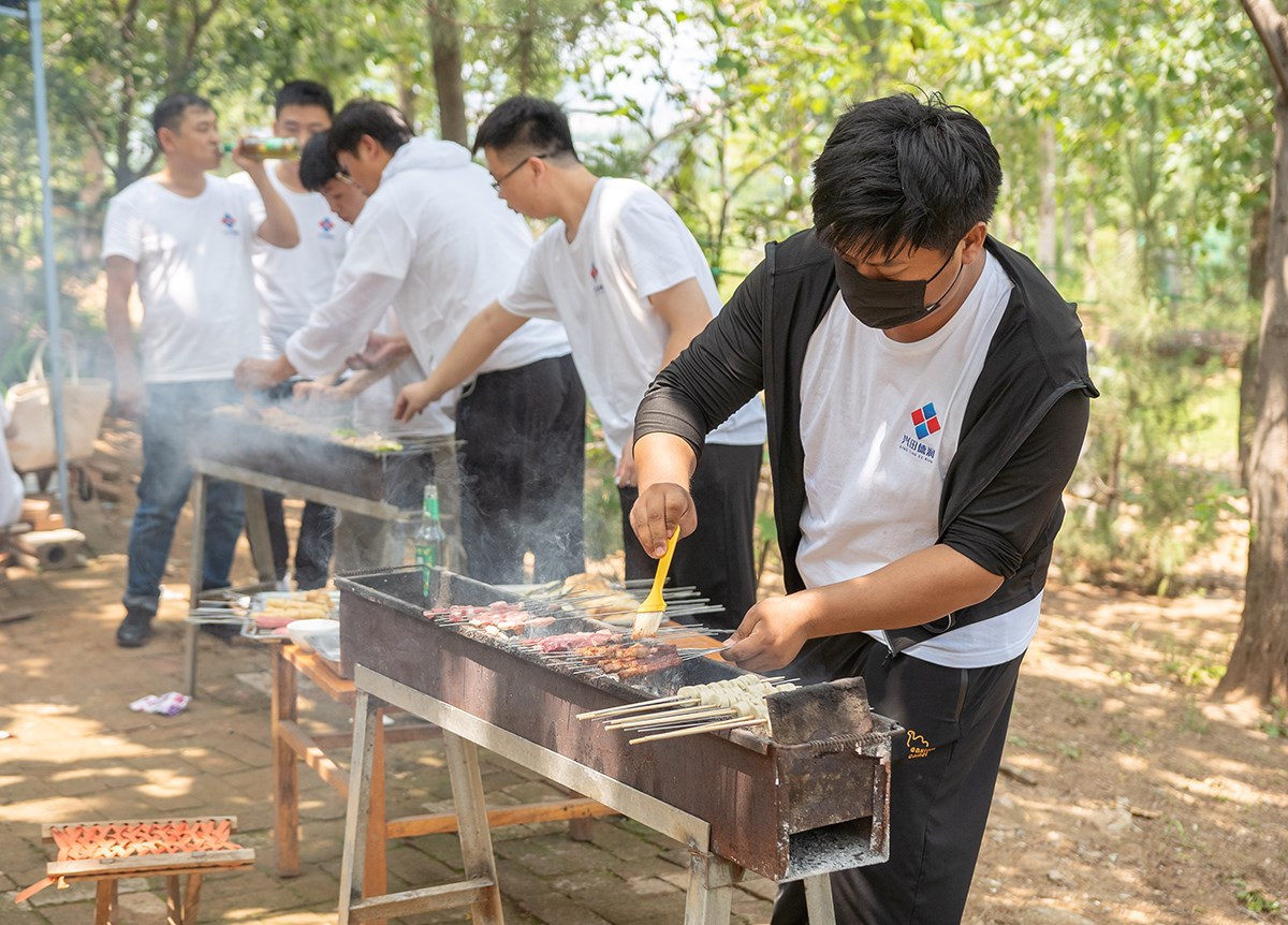 會議結(jié)束后就到了午餐時間,享受一頓美味,實屬人間一大快事。小伙伴們經(jīng)過一上午的團(tuán)建活動加開會,早已饑腸轆轆,然而我們也為此準(zhǔn)備很多美食,有烤全羊、冰鎮(zhèn)大西瓜等、其次是在做燒烤的時候很多小伙伴積極參與進(jìn)來,共同制作燒烤,場面異常熱鬧。