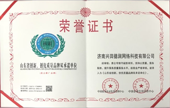 近日,興田科技經(jīng)中國質(zhì)量認(rèn)證監(jiān)督管理中心、中國企業(yè)信用評估中心對公司及官方網(wǎng)站的征信調(diào)查和綜合評價,被評選為山東省創(chuàng)新、創(chuàng)優(yōu)質(zhì)量品牌雙承諾單位。這標(biāo)志著興田科技在綜合實(shí)力、企業(yè)競爭力、服務(wù)質(zhì)量水平、安全運(yùn)營能力等方面再次獲得了權(quán)威機(jī)構(gòu)的高度認(rèn)可。